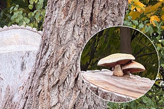 Working species ID is possibly: Destructive Pholiota (Hemipholiota populnea). The cut end of the tree it is growing from was over ten feet above ground
