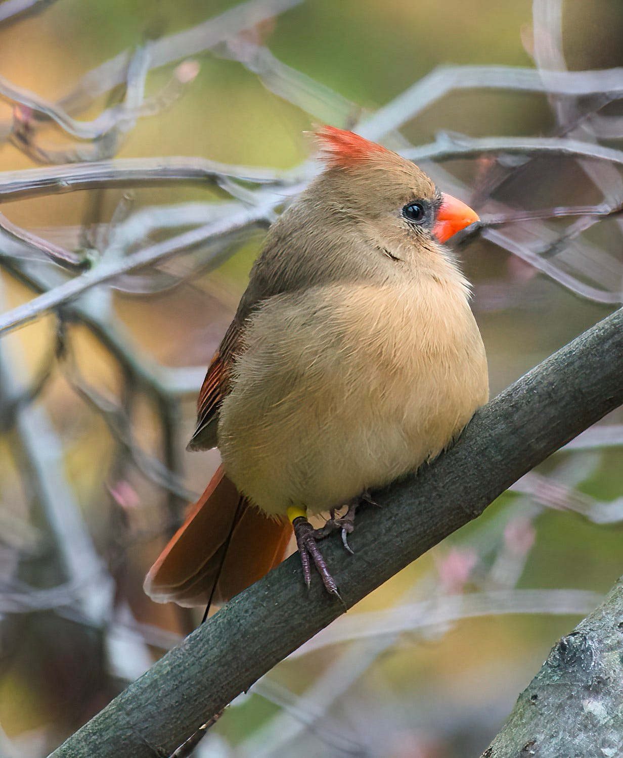They are a resident, non-migratory species that survives northern winters by finding seeds, berries, and the occasional insect, to eat and, of course, and they frequent bird feeders heavily. They are territorial but we have at least three pairs that coexist in winter in our garden because of the food we provide and the shelter they find in our bushes and shrubs. Last winter and the one before our garden was host to a MOTUS bird telemetry tower placed there by a McGill U masters student studying urban Cardinals and she certainly got lots of pings from “our” birds. Away from gardens with feeders, Cardinals live in dense shrubby areas such as forest edges, overgrown fields, hedgerows, backyards, marshy thickets, regrowing forest, and similar. It is thought that the increasing size of suburbs with their gardens (and feeders) may have been a driver in the species spreading their territory northwards.