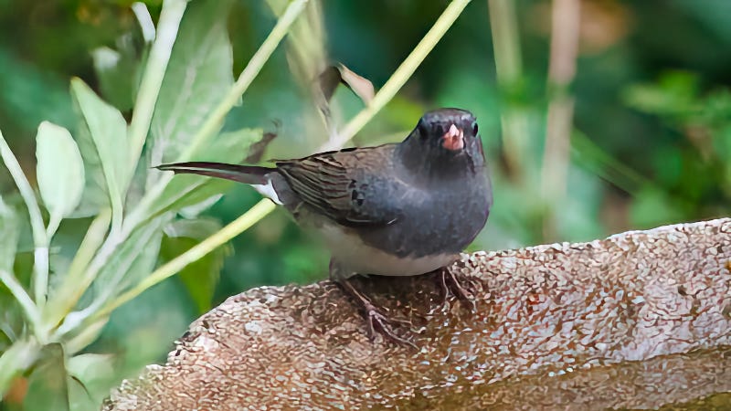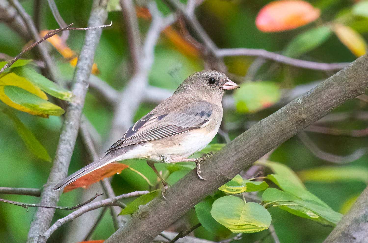 Regardless of the weather, the past week has seen the arrival here of Dark-eyed Juncos. Fine, grey sparrows that come south to us for the winter from the far north and which will be with us for the white months ahead. Very welcome little birds that ignore the feeders and take their meals from what they can find on the ground.