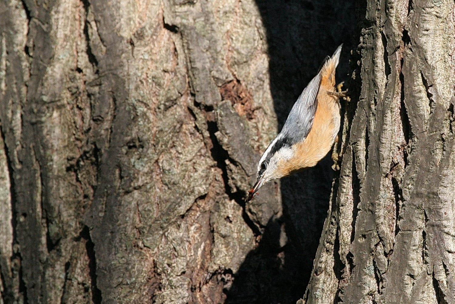 Red-breasted Nuthatches (see above) are reasonably regular here but not as frequently seen as are the White-breasted Nuthatches. Here in Montreal we are approaching the southern edge of their breeding range but just now sightings are increasing as some more northerly individuals pass through heading southwards for winter.