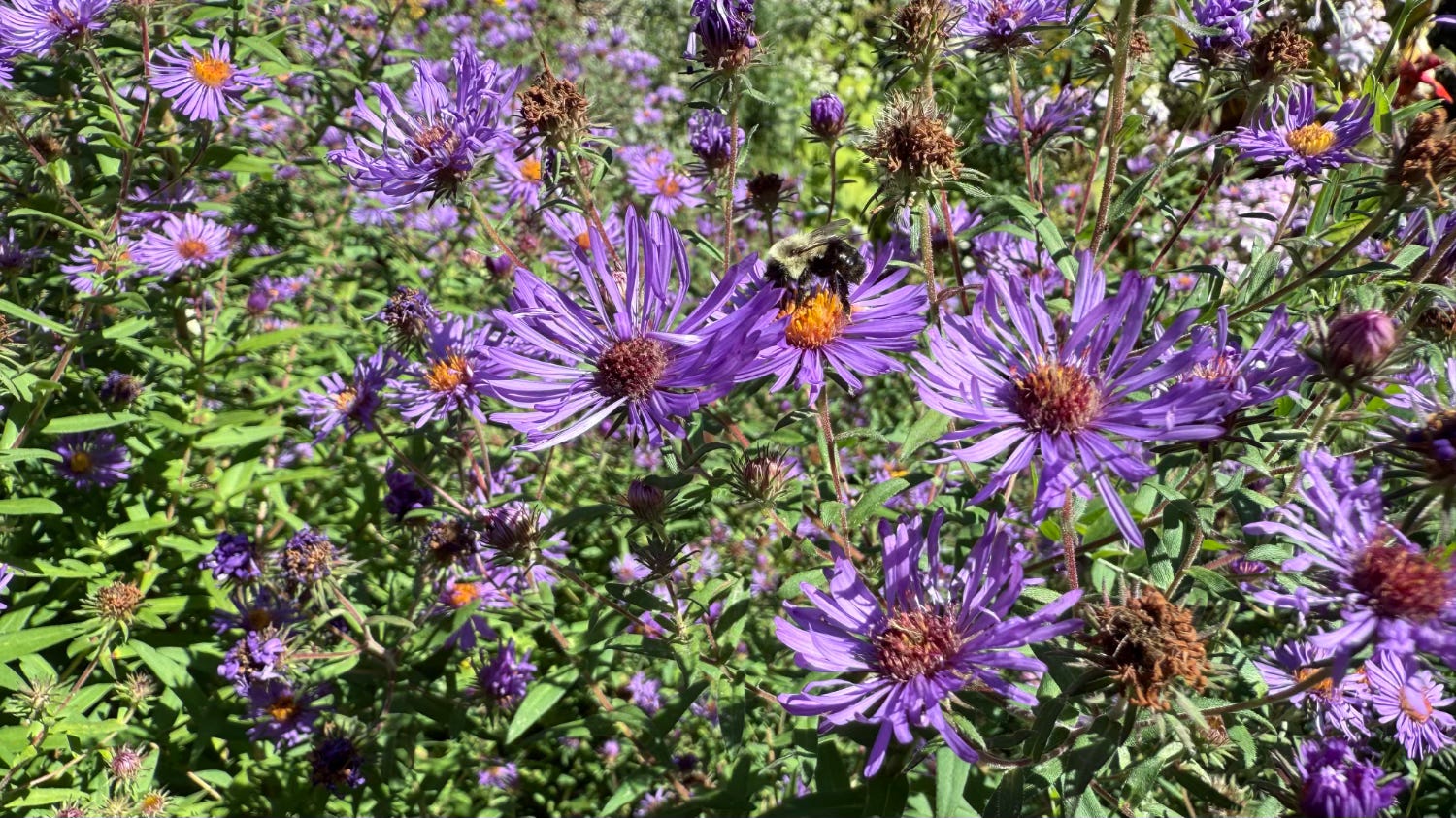 I turned another year older a couple of days ago, and celebrated for a while, in the sunshine, with this Common Eastern Bumble Bee enjoying a large stand of New England Asters.