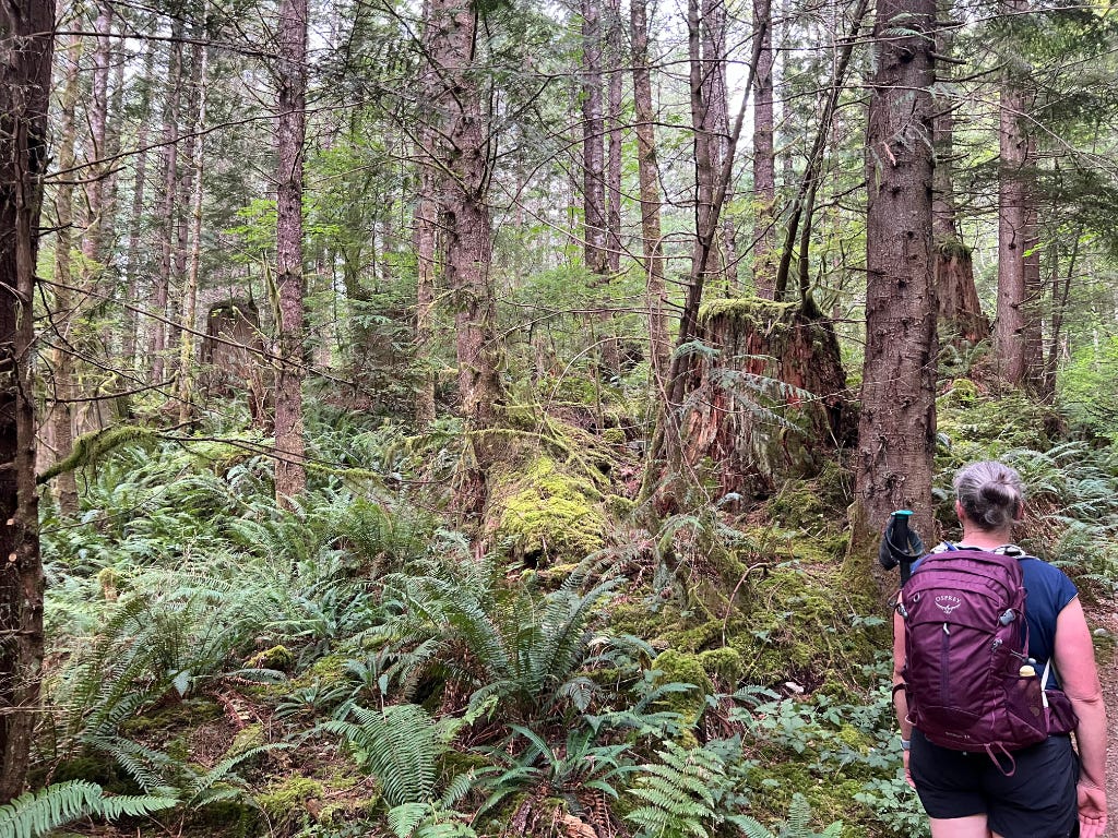 The trip up Mount Teneriffe is what I consider a “classic” Washington summit: you start in the river valley and head straight up until you reach the summit. In general, these get you 4,000 to 5,000 feet of elevation in anywhere from 3 to 10 miles. These hikes ALWAYS start in the forest, and this one is no different—or I should say, this forest has a lot of the qualities I’ve grown to expect. Thick ferns and other brush where there’s enough light, with very little underbrush where the trees are thickest. This is all second- and third-growth forest we were going through, but you can see remnants of the big trees that used to be here. There’s enough water in the mountains that we had a couple small stream crossings.
