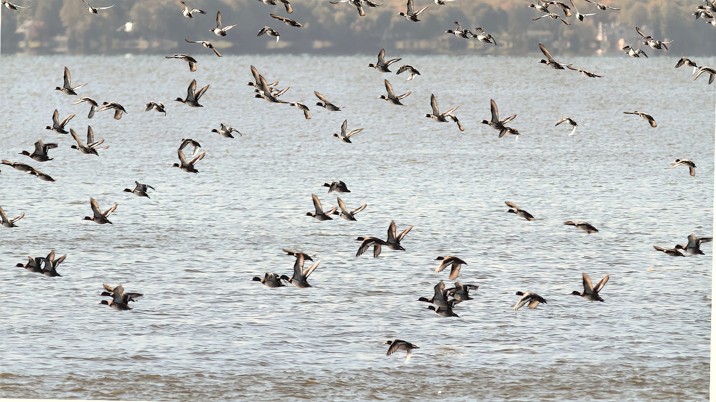 Waterfowl accumulations are out on the river as fall progresses. Some will stay as long as there is open water they can find feed in/under while others are pausing for the next stage of the journey southwards