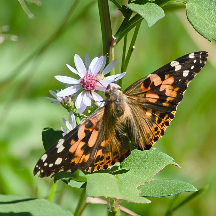 There are changes in the places we go walking as we roll up to the end of September. We are gradually seeing fewer species of birds in the garden and now there are fewer visits by birds migrating south. Some recent delights - not a native plant but we have some pots of Cuphea (Mexican cigar plant flowers) on the deck and one day mid week there were five or six Ruby-throated Hummingbirds refuelling for all they were worth … each one swollen and tennis-ball shaped with fatty fuel for the long journey ahead of them. Since then we have seen none - that’s the last of the Hummers for 2025.