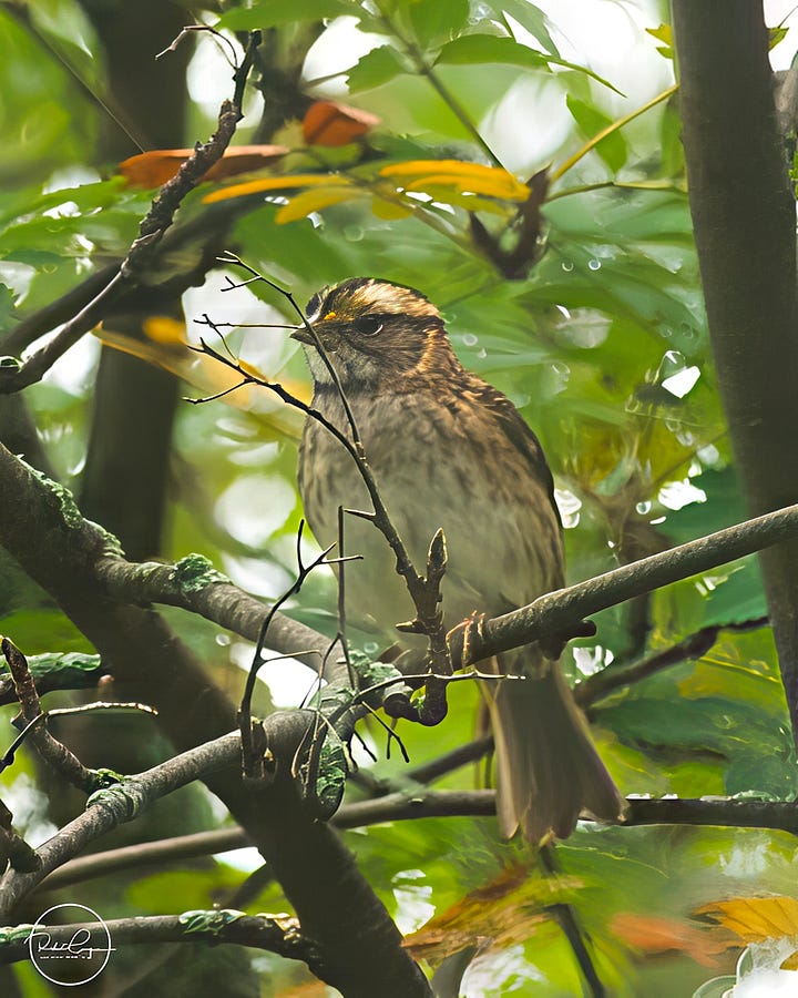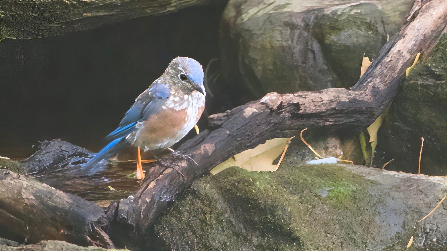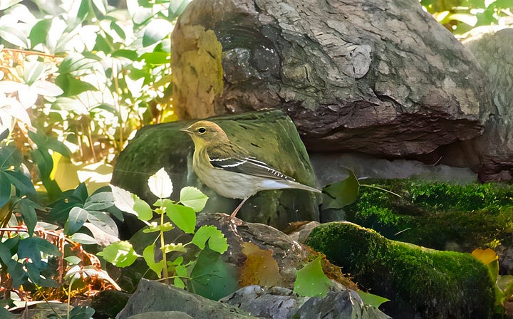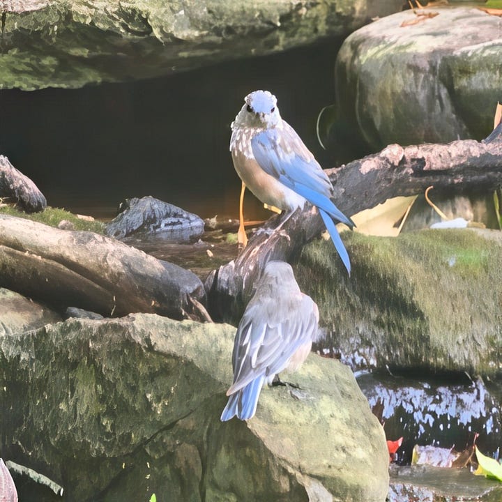 Parent Northern Cardinals and House Finches are still feeding the last clutches of youngsters they have raised. Hopefully they will be independent before long. Then late yesterday afternoon a couple of juvenile (still spotty) juvenile Eastern Bluebirds dropped by for a cooling splash in the waterfall. A Chipping Sparrow looked, waiting for his turn. Then, half an hour later, the first of the “real’” winter birds was seen - Dark-eyed Junco.