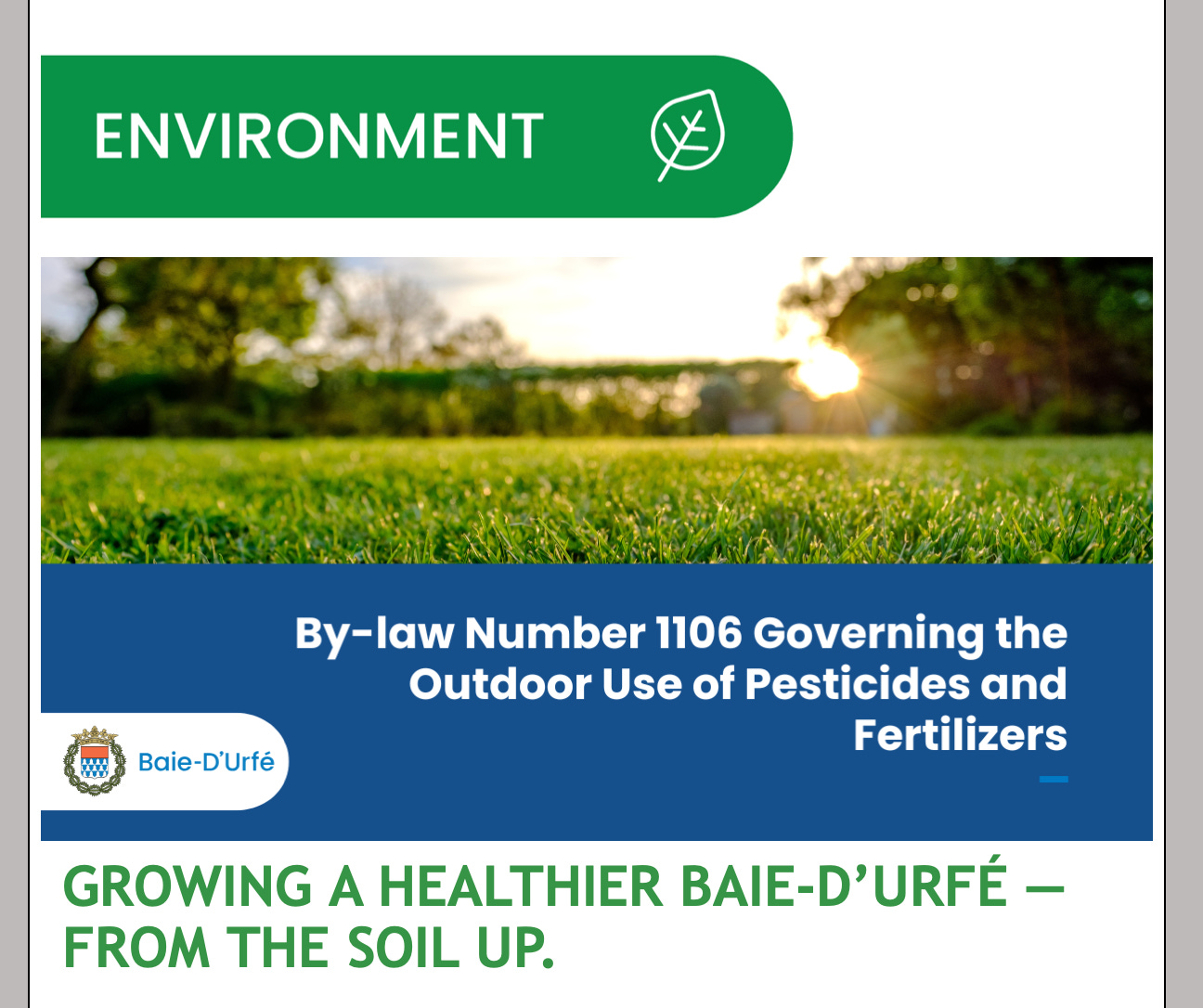… the Town adopted an updated by-law regulating the use of pesticides and fertilizers. It continues to be guided by a strong commitment to public health, safety, and environmental protection. The update considers some exceptional circumstances while reflecting a preventive approach aimed at reducing potential risks to residents and wildlife, protecting local ecosystems and waterways, and encouraging more sustainable landscape practices throughout the community.