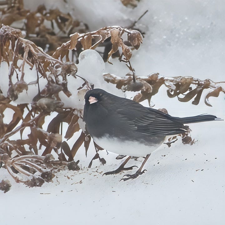 🐦⬛ Dark-eyed Juncos were seen every week except from May to mid-September when they were far to the north laying eggs.