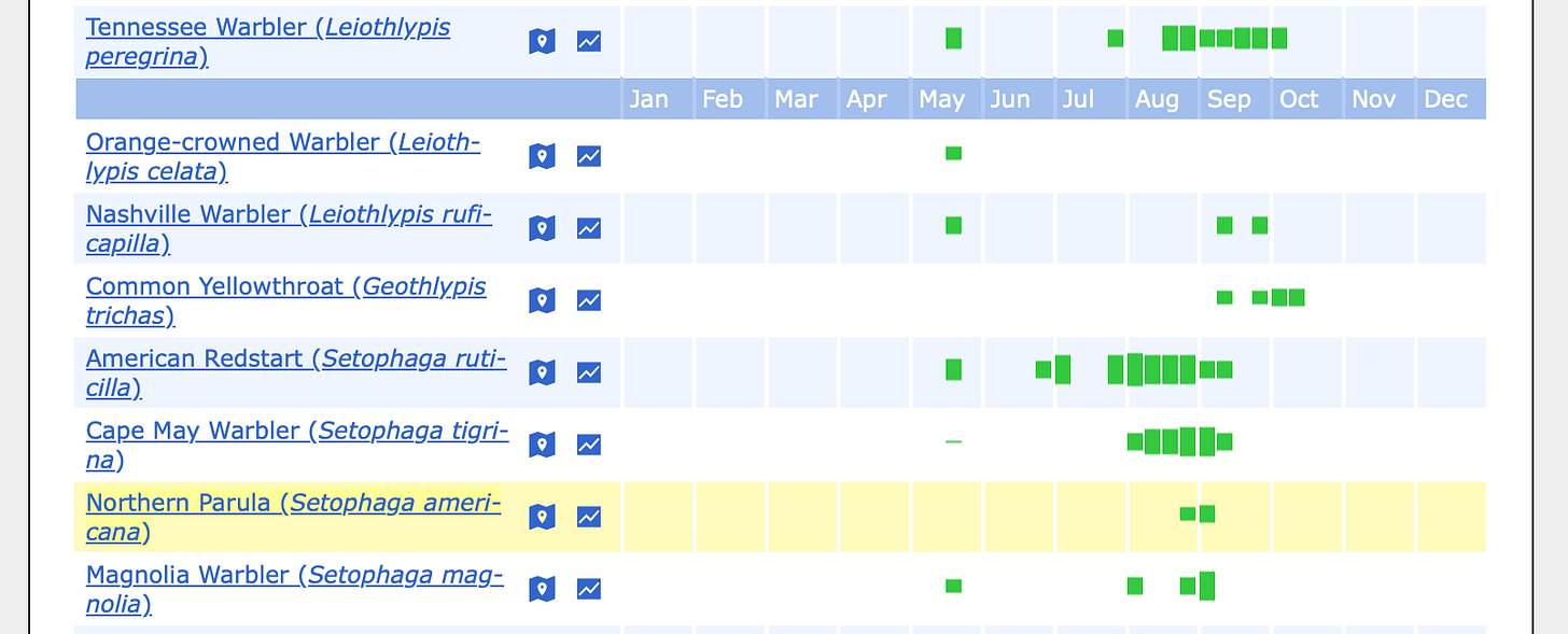 🐦⬛ A really good selection of Warblers - 19 species! - made an appearance, mostly during spring and fall migration. You can see the species in the eBird chart via the link given above. The most frequent during 2025 was probably the American Redstart who most years is a blink and you missed it tick.