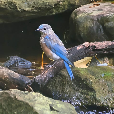 🐦⬛ A pair of American Robins built a nest in a flower pot under our front porch and successfully raised three youngsters. This was a delight … though perhaps not for the postman and other visitors who would be roundly abused from a nearby magnolia tree when they turned up.