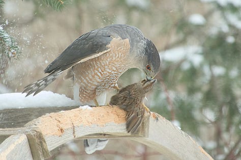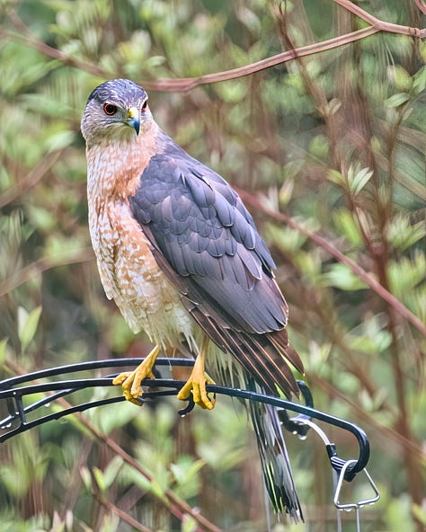 🐦⬛ Occasional visits by raptors in search of a meal were made by Coopers Hawk (most frequent), Sharp-shinned, Red-tailed and Red-shouldered Hawks.
