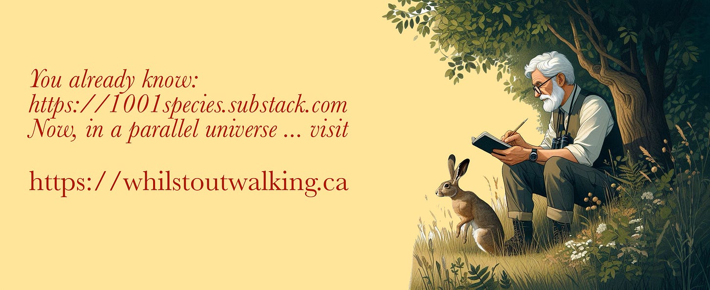I have been writing articles about wildlife and wild gardening since the summer of 2023 and publishing them on Substack (https://1001species.substack.com) where they will continue to appear. I have now opened a “parallel” website, simply because it is becoming evident that the people at Substack would like me to start charging readers for subscriptions – after all, that’s what they are in business for – and their algorithms, or so I have learned, are being subtly tweaked to reduce the discoverability of free sites from which they make no money. The new site will mirror a good number of the Substack articles, but also contain original material that won’t make it to Substack. Early days, starting slowly, but this is where the interesting rabbit holes will be found and where my Substack articles will be archived if ever I am cut adrift. Consider it a Plan B, I have no wish to leave the Substack world.