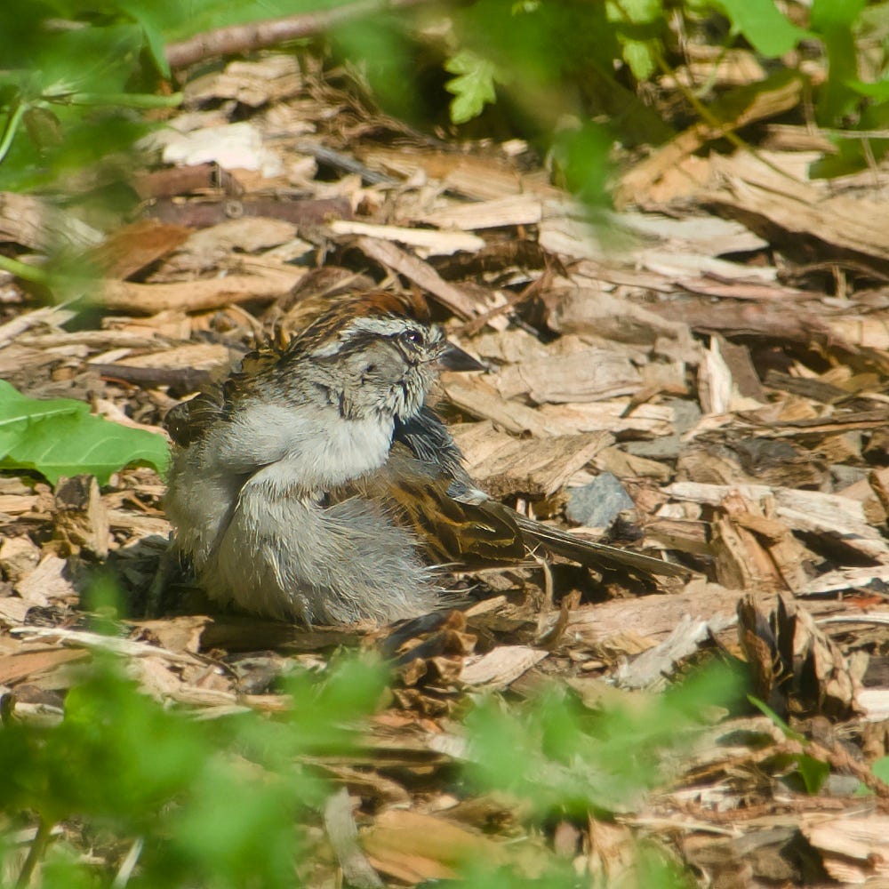 'Our' chipping sparrows are looking pretty scruffy now too, but not as bad as the year in which they raised a cowbird!