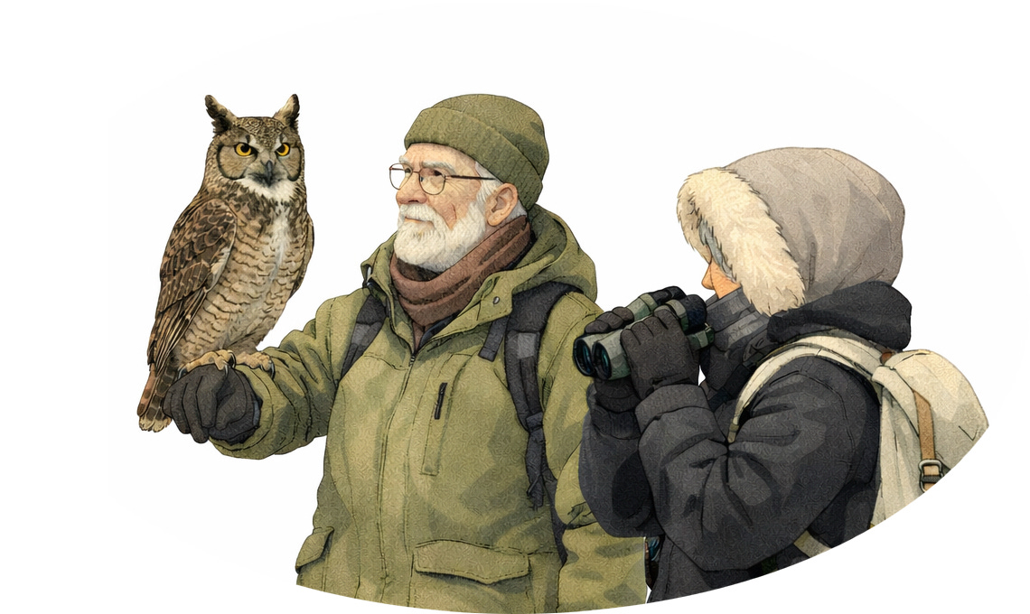 The only true “hawk owl” native to North America, lives in boreal forests and sub‑arctic taiga from Alaska and Canada down into the northern Rocky Mountains and the upper Midwest of the United States. Its name is due to it looking rather more like a small hawk than a typical owl. They have long, pointed wings, and a distinctive facial disc edged with black “eyebrows.” Predominantly diurnal, hunting by soaring high over open woodland. Seasonal movements are irregular - some birds migrate short distances southward in harsh winters, while others remain resident if food remains abundant.