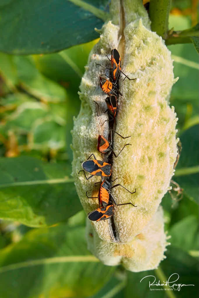 Others you might see include various species of Stink Bugs and, really hard to miss, the Dog-day and Northern Dog-day Cicadas of late summer. If you are keeping a corner of your garden to grow milkweeds for the Monarch butterflies then look out for the Small, Eastern Small and the Large Milkweed Bugs.