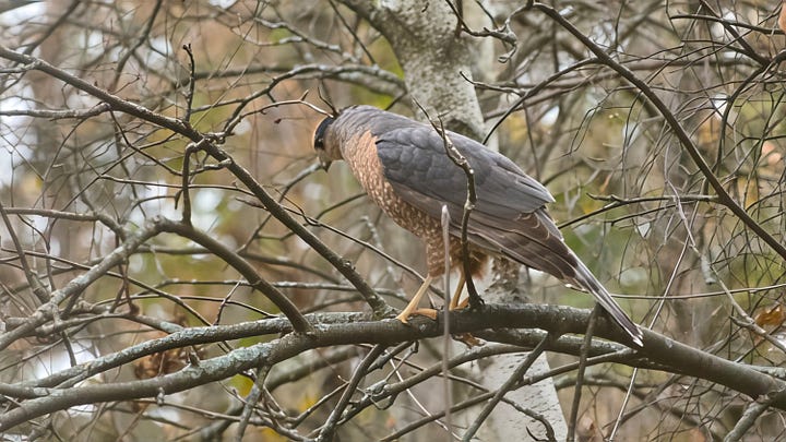 … and, this is the start week when begin our winter “duties” at the nearby bird banding station for the next four to five months. Basically this means filling the feeders and then walking/snowshoeing the trails to record the presence of birds, regardless of low temperature and snow depth. Best part of every year!